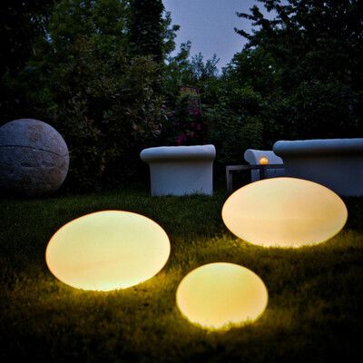 Por fim, não podemos deixar de mencionar as divertidas e especiais luzes de exterior Eggy Pop de Guglielmo Berchicci da CPH Lighting. Disponível em vários tamanhos, pode criar um efeito incrível e acolhedor misturando os tamanhos e colocando-os no seu relvado. Também estão disponíveis numa versão para interior. São fabricados em polietileno, um material resistente ao impacto e reciclável.