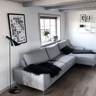 A minha primeira sugestão para a sua sala de estar são os clássicos candeeiros PH. Aqui vê PH 3/2 candeeiro de mesa e PH 3/2 candeeiro de pé em duas casas diferentes, mas com o mesmo estilo, com paredes cinzentas e interiores minimalistas e elegantes. Alguns poderão pensar que são lâmpadas para a geração mais velha, mas não - são incrivelmente populares independentemente da idade. Eu diria mesmo que são tão populares entre os jovens como entre os mais velhos, pois estamos numa época em que as pessoas querem gastar mais dinheiro em qualidade e design.