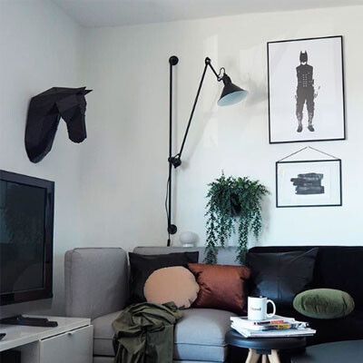 A Lampe Gras é uma marca incrivelmente popular no que diz respeito a candeeiros de parede, uma vez que tem uma enorme seleção. Podem ser adquiridos para montagem direta ou, como neste caso, num poste. Também estão disponíveis em diferentes comprimentos, cores e pode escolher o número de dobras que pretende na barra. As lâmpadas Lampe Gras são incrivelmente flexíveis e, por isso, extremamente úteis na sala de estar, uma vez que pode deslocar facilmente a sua luz conforme necessário.