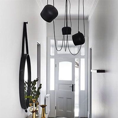 O pendente Terho da marca Mater é um candeeiro elegante, simples e nórdico que confere uma expressão agradável ao corredor e à entrada. O candeeiro está disponível em três tamanhos, onde pode optar por pendurar um sozinho ou pendurá-lo num grupo de vários juntos, como na imagem.