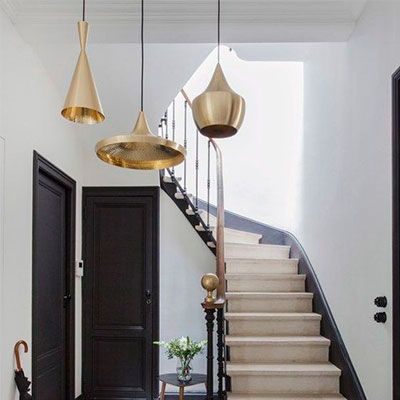 Esta série de pendentes está disponível nas cores preto, branco e latão. É uma coleção de iluminação arrojada que traz uma lufada de ar fresco ao hall de entrada, criando um efeito acolhedor. Pode optar por pendurar vários deles juntos, como na imagem, ou apenas um sozinho. Existem muitas possibilidades com a série Beat Light.