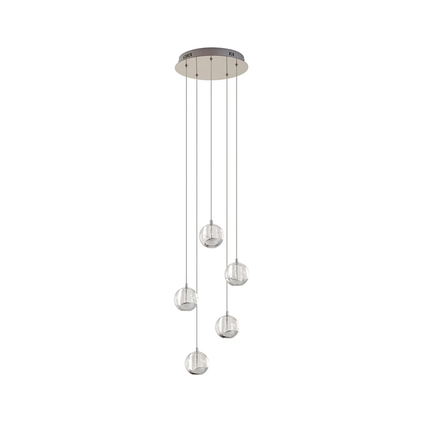 Com a sua bela e elegante silhueta curva, o candeeiro Hayley 5 Pendant Light Clear/Chrome ficará muito bem em quase todas as divisões. Especialmente como o elemento unificador na sala de estar, suspenso em pares acima da mesa de jantar ou talvez até no hall de entrada, ele se destacará. A deliciosa luz quente que emana das fontes de luz mima os olhos e confere à divisão uma estética elegante e apelativa.